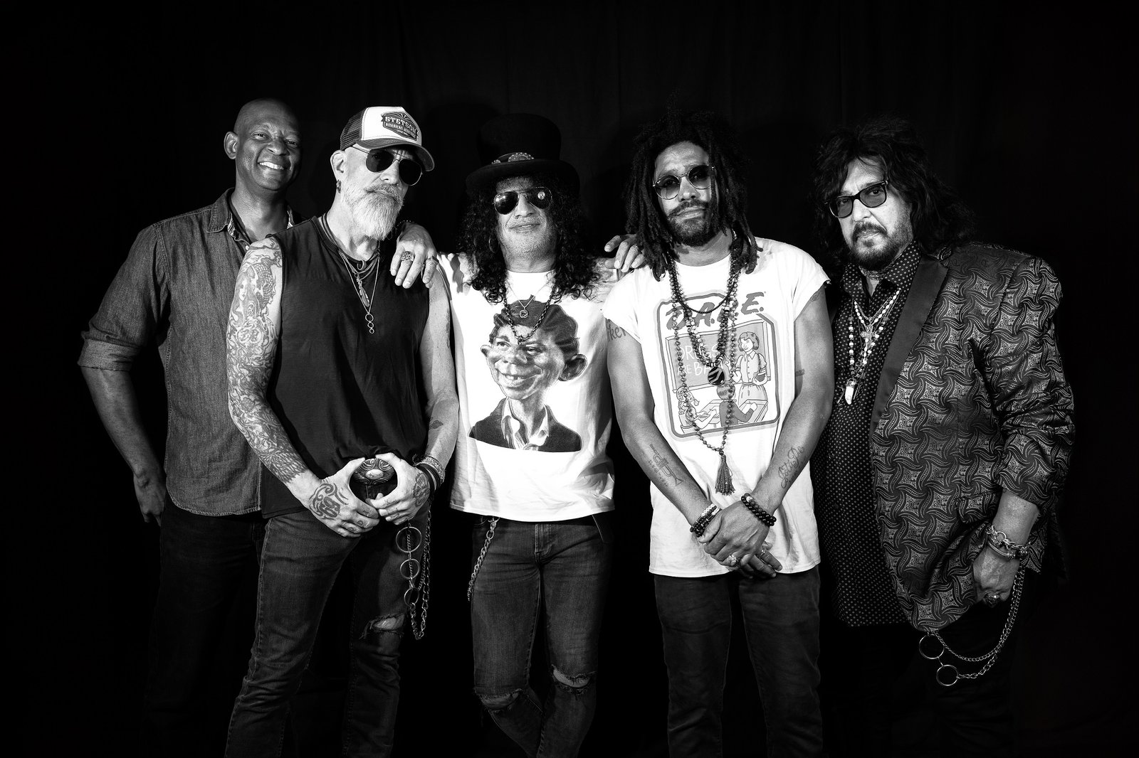 SLASH’s Blues Ball includes Teddy “ZigZag” Andreadis on keyboards, harmonica, and vocals; Tash Neal on rhythm guitar and vocals; Johnny Griparic on bass; and Michael Jerome on drums. The band performs blues staples and rock classics, honoring artists such as Bukka White, Howlin’ Wolf, Booker T. & the MG’s, Fleetwood Mac, and Robert Johnson, while debuting SLASH’s original track “Metal Chestnut.”