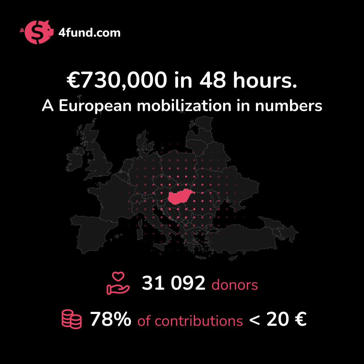 Momentum built rapidly from the very start, with more than €250,000 raised within the first three hours and over €500,000 collected within 12 hours. Campaigns reaching this scale remain extremely rare, especially on the 4fund platform where fundraisers exceeding 1,000 donations account for less than 0.2% of all cases.